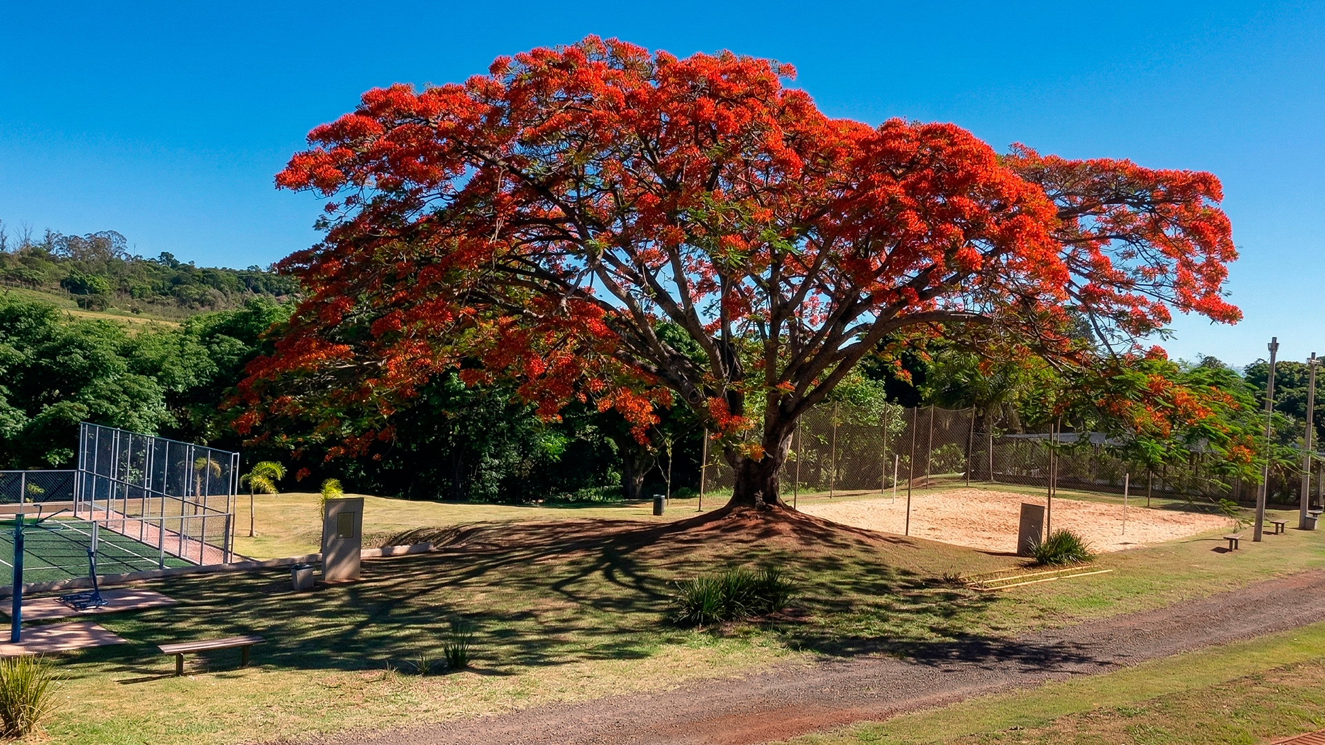 O parque oferece área verde, pistas de caminhada, playground e espaço para atividades físicas.